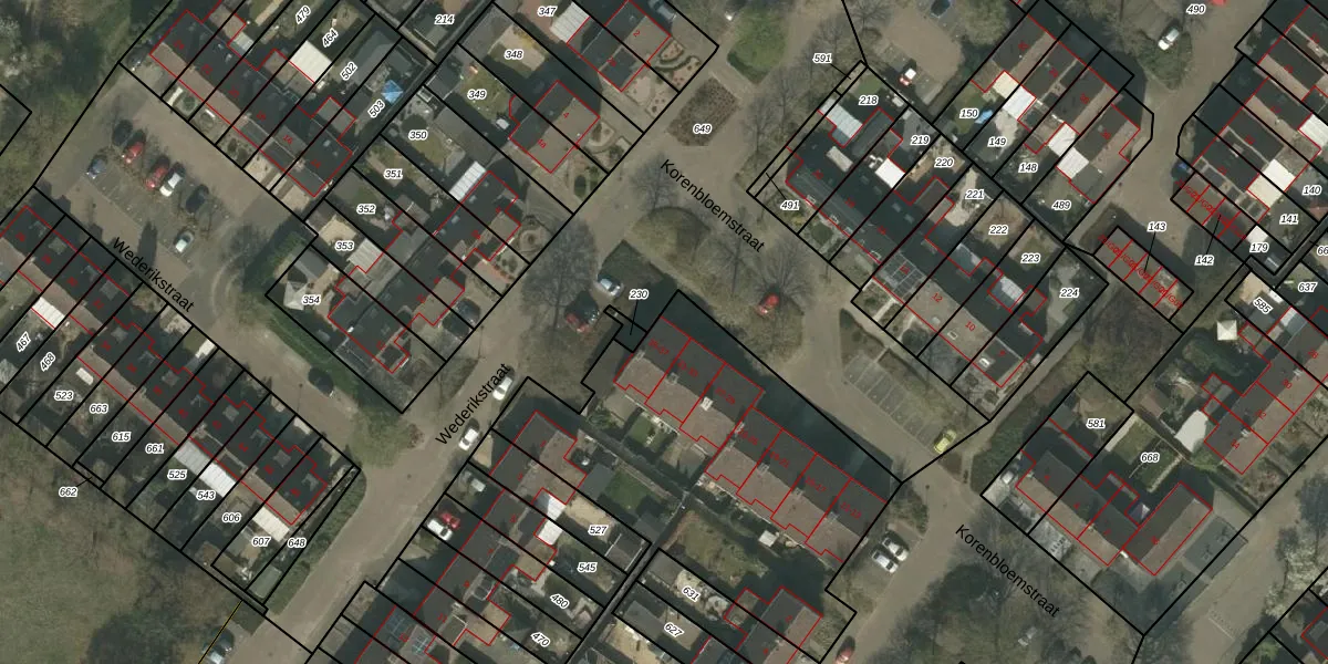 Het perceel waarop Korenbloemstraat 37 staat heeft een oppervlakte van 3714 m². Dit is een zeer groot perceel. De perceeloppervlakte wordt geregistreerd door het Kadaster. Gedetailleerde informatie over de maten van dit perceel kunt u vinden in het rapport Kadastrale kaart met maatvoering van Korenbloemstraat 37.