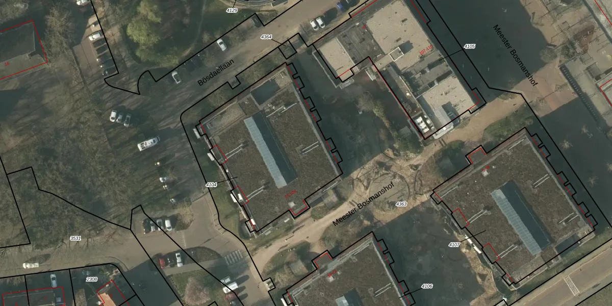 Meester Bosmanshof 105 is gelegen op kadastraal perceel BSL02B4104. Deze kadastrale aanduiding is uniek en wordt gebruikt door het Kadaster om eigendomsrechten en andere zakelijke rechten vast te leggen. Het perceel maakt onderdeel uit van de kadastrale gemeente Beesel.