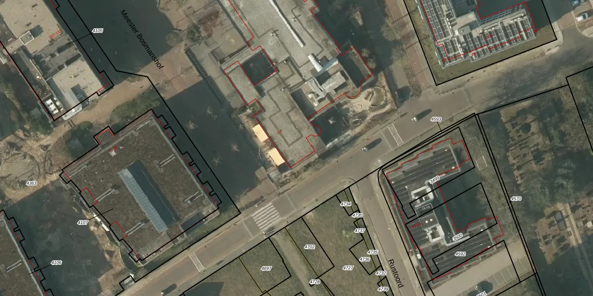 Het perceel waarop Meester Bosmanshof 3 staat heeft een oppervlakte van 18,3 ha. Dit is een zeer groot perceel. De perceeloppervlakte wordt geregistreerd door het Kadaster. Gedetailleerde informatie over de maten van dit perceel kunt u vinden in het rapport Kadastrale kaart met maatvoering van Meester Bosmanshof 3.