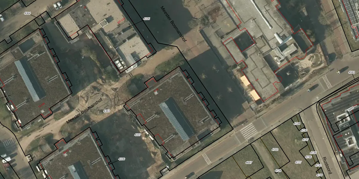 Het perceel waarop Meester Bosmanshof 31 staat heeft een oppervlakte van 1465 m². Dit is een zeer groot perceel. De perceeloppervlakte wordt geregistreerd door het Kadaster. Gedetailleerde informatie over de maten van dit perceel kunt u vinden in het rapport Kadastrale kaart met maatvoering van Meester Bosmanshof 31.