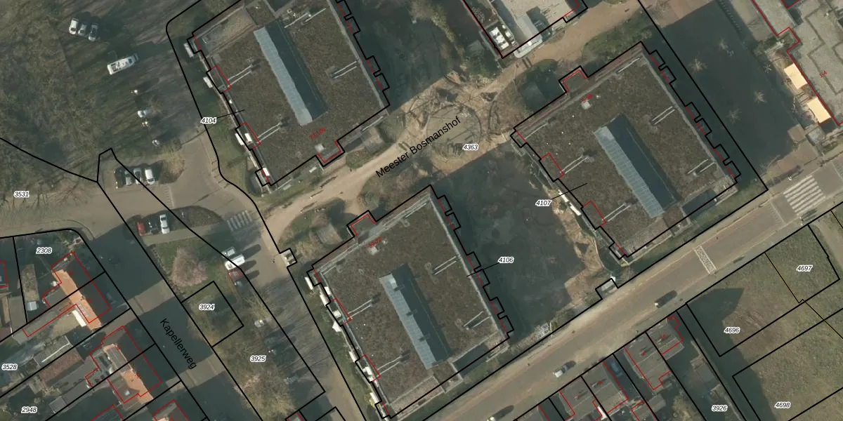 Meester Bosmanshof 39 is gelegen op kadastraal perceel BSL02B4106. Deze kadastrale aanduiding is uniek en wordt gebruikt door het Kadaster om eigendomsrechten en andere zakelijke rechten vast te leggen. Het perceel maakt onderdeel uit van de kadastrale gemeente Beesel.