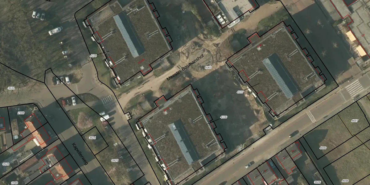 Meester Bosmanshof 40 is gelegen op kadastraal perceel BSL02B4106. Deze kadastrale aanduiding is uniek en wordt gebruikt door het Kadaster om eigendomsrechten en andere zakelijke rechten vast te leggen. Het perceel maakt onderdeel uit van de kadastrale gemeente Beesel.