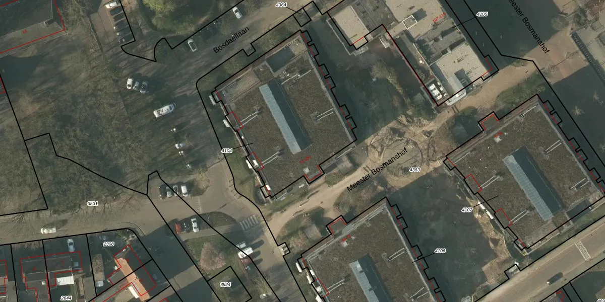 Meester Bosmanshof 91 is gelegen op kadastraal perceel BSL02B4104. Deze kadastrale aanduiding is uniek en wordt gebruikt door het Kadaster om eigendomsrechten en andere zakelijke rechten vast te leggen. Het perceel maakt onderdeel uit van de kadastrale gemeente Beesel.