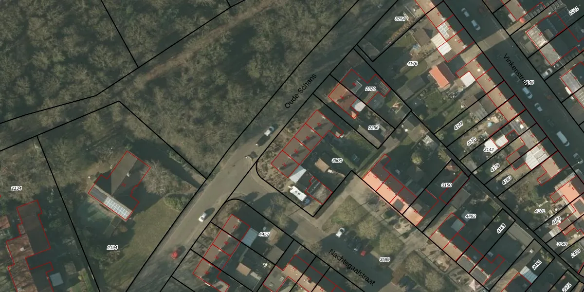 Het perceel waarop Oude Schans 38 staat heeft een oppervlakte van 1505 m². Dit is een zeer groot perceel. De perceeloppervlakte wordt geregistreerd door het Kadaster. Gedetailleerde informatie over de maten van dit perceel kunt u vinden in het rapport Kadastrale kaart met maatvoering van Oude Schans 38.