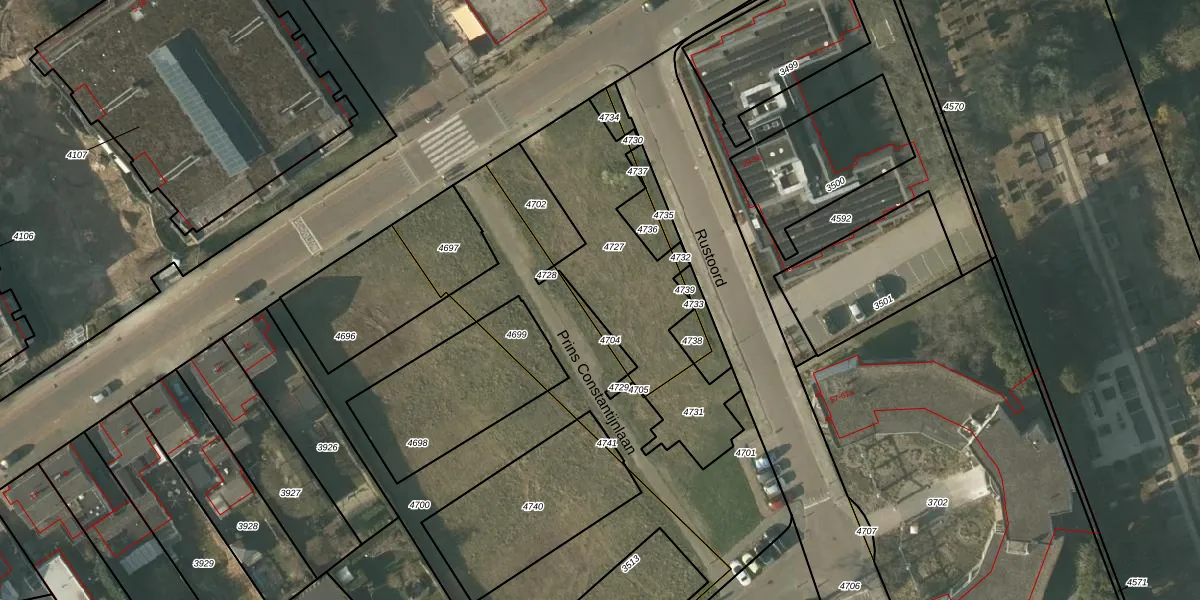 Het perceel waarop Prins Constantijnlaan 4 staat heeft een oppervlakte van 609 m². Dit is een groot perceel. De perceeloppervlakte wordt geregistreerd door het Kadaster. Gedetailleerde informatie over de maten van dit perceel kunt u vinden in het rapport Kadastrale kaart met maatvoering van Prins Constantijnlaan 4.
