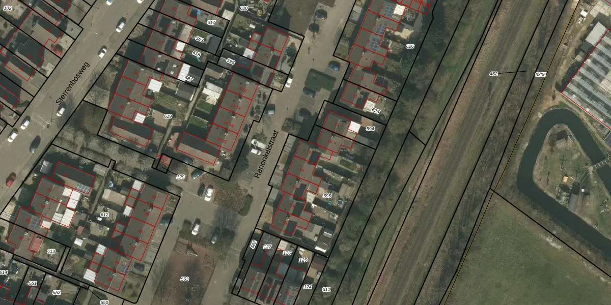 Het perceel waarop Ranonkelstraat 17 staat heeft een oppervlakte van 1017 m². Dit is een zeer groot perceel. De perceeloppervlakte wordt geregistreerd door het Kadaster. Gedetailleerde informatie over de maten van dit perceel kunt u vinden in het rapport Kadastrale kaart met maatvoering van Ranonkelstraat 17.