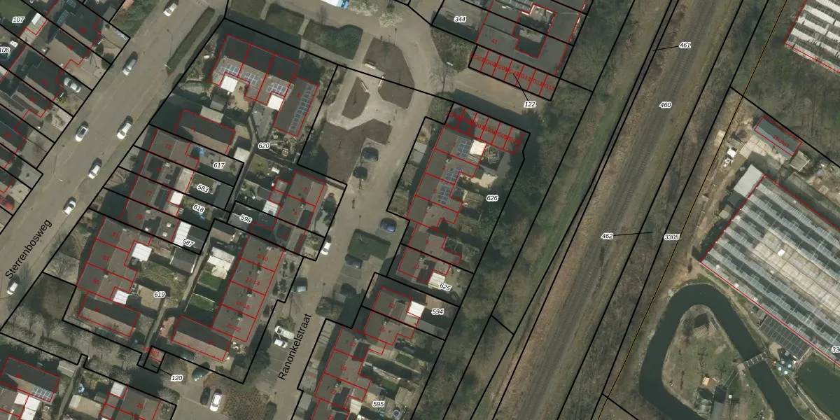 Het perceel waarop Ranonkelstraat 7 staat heeft een oppervlakte van 845 m². Dit is een groot perceel. De perceeloppervlakte wordt geregistreerd door het Kadaster. Gedetailleerde informatie over de maten van dit perceel kunt u vinden in het rapport Kadastrale kaart met maatvoering van Ranonkelstraat 7.
