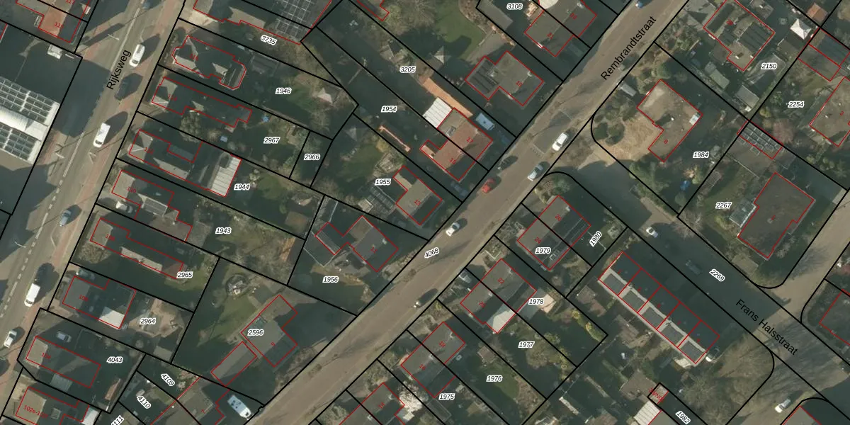 Het perceel waarop Rembrandtstraat 13 staat heeft een oppervlakte van 515 m². Dit is een groot perceel. De perceeloppervlakte wordt geregistreerd door het Kadaster. Gedetailleerde informatie over de maten van dit perceel kunt u vinden in het rapport Kadastrale kaart met maatvoering van Rembrandtstraat 13.
