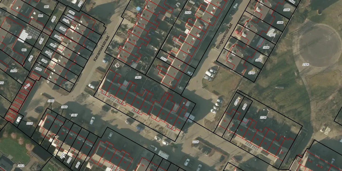 Het perceel waarop Ringovenstraat 1 staat heeft een oppervlakte van 1633 m². Dit is een zeer groot perceel. De perceeloppervlakte wordt geregistreerd door het Kadaster. Gedetailleerde informatie over de maten van dit perceel kunt u vinden in het rapport Kadastrale kaart met maatvoering van Ringovenstraat 1.