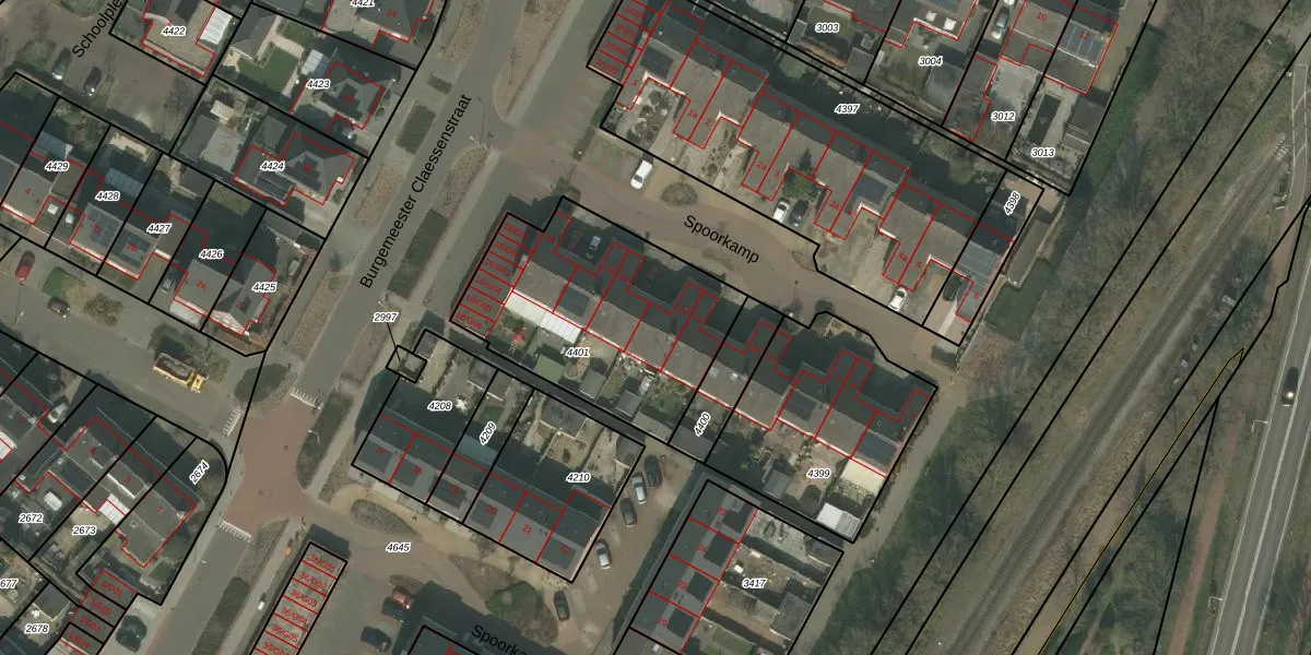 Het perceel waarop Spoorkamp 13 staat heeft een oppervlakte van 945 m². Dit is een groot perceel. De perceeloppervlakte wordt geregistreerd door het Kadaster. Gedetailleerde informatie over de maten van dit perceel kunt u vinden in het rapport Kadastrale kaart met maatvoering van Spoorkamp 13.