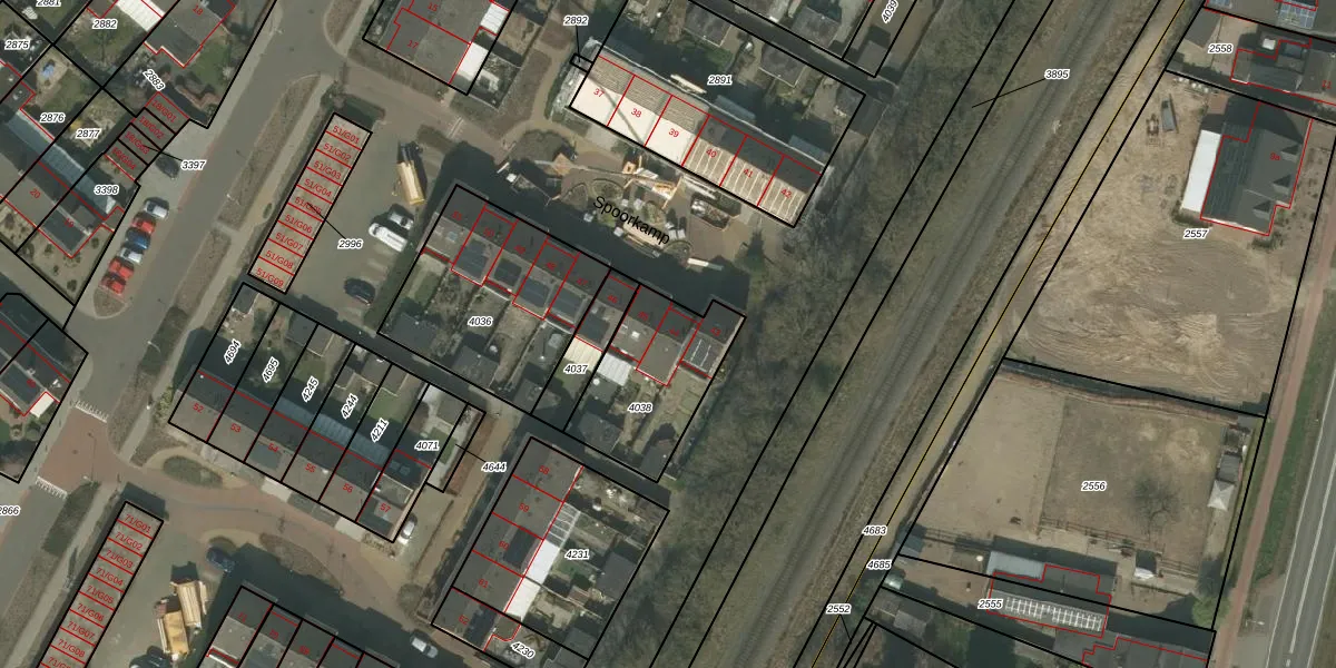 Het perceel waarop Spoorkamp 44 staat heeft een oppervlakte van 421 m². Dit is een groot perceel. De perceeloppervlakte wordt geregistreerd door het Kadaster. Gedetailleerde informatie over de maten van dit perceel kunt u vinden in het rapport Kadastrale kaart met maatvoering van Spoorkamp 44.