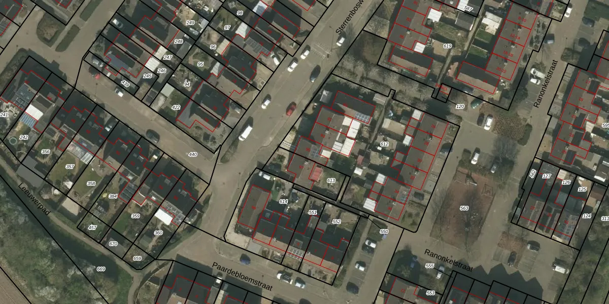Sterrenbosweg 95 is gelegen op kadastraal perceel BSL02L612. Deze kadastrale aanduiding is uniek en wordt gebruikt door het Kadaster om eigendomsrechten en andere zakelijke rechten vast te leggen. Het perceel maakt onderdeel uit van de kadastrale gemeente Beesel.