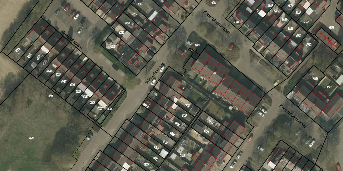Het perceel waarop Wederikstraat 1 staat heeft een oppervlakte van 3714 m². Dit is een zeer groot perceel. De perceeloppervlakte wordt geregistreerd door het Kadaster. Gedetailleerde informatie over de maten van dit perceel kunt u vinden in het rapport Kadastrale kaart met maatvoering van Wederikstraat 1.