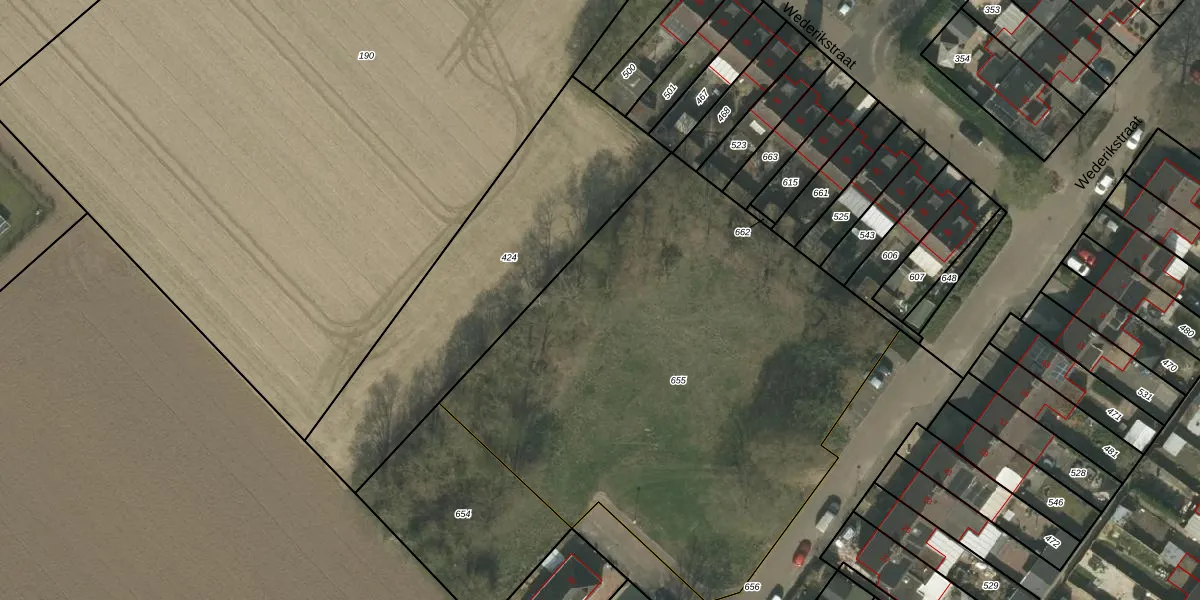 Het perceel waarop Wederikstraat 56 staat heeft een oppervlakte van 3059 m². Dit is een zeer groot perceel. De perceeloppervlakte wordt geregistreerd door het Kadaster. Gedetailleerde informatie over de maten van dit perceel kunt u vinden in het rapport Kadastrale kaart met maatvoering van Wederikstraat 56.