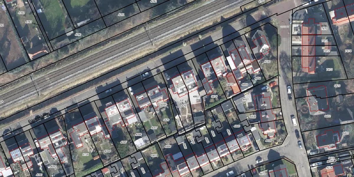 Parallelweg 23 is gelegen op kadastraal perceel RDN02D6425. Deze kadastrale aanduiding is uniek en wordt gebruikt door het Kadaster om eigendomsrechten en andere zakelijke rechten vast te leggen. Het perceel maakt onderdeel uit van de kadastrale gemeente Rheden.