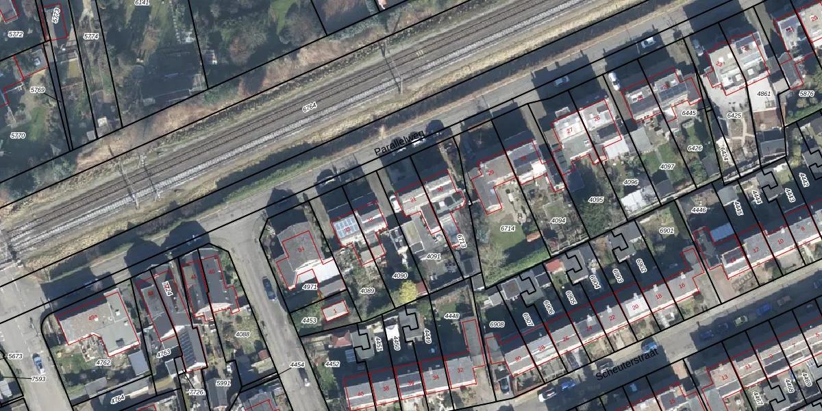 Parallelweg 31 is gelegen op kadastraal perceel RDN02D4091. Deze kadastrale aanduiding is uniek en wordt gebruikt door het Kadaster om eigendomsrechten en andere zakelijke rechten vast te leggen. Het perceel maakt onderdeel uit van de kadastrale gemeente Rheden.