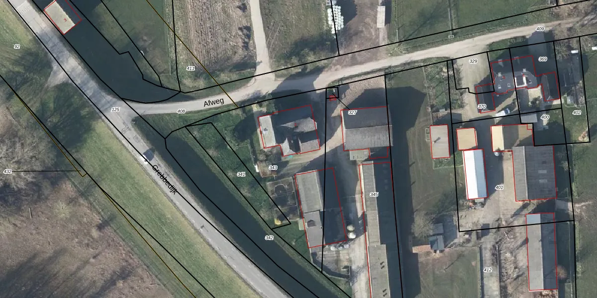 Afweg 2 is gelegen op kadastraal perceel RNN01D343. Deze kadastrale aanduiding is uniek en wordt gebruikt door het Kadaster om eigendomsrechten en andere zakelijke rechten vast te leggen. Het perceel maakt onderdeel uit van de kadastrale gemeente Rhenen.