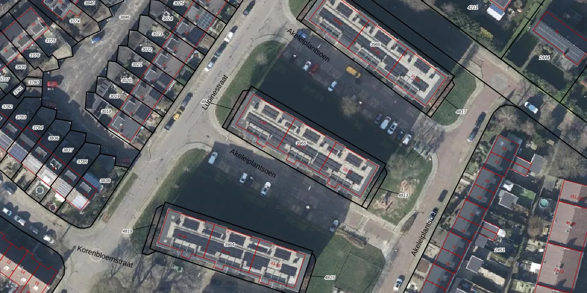 Het perceel waarop Akeleiplantsoen 15 staat heeft een oppervlakte van 909 m². Dit is een groot perceel. De perceeloppervlakte wordt geregistreerd door het Kadaster. Gedetailleerde informatie over de maten van dit perceel kunt u vinden in het rapport Kadastrale kaart met maatvoering van Akeleiplantsoen 15.