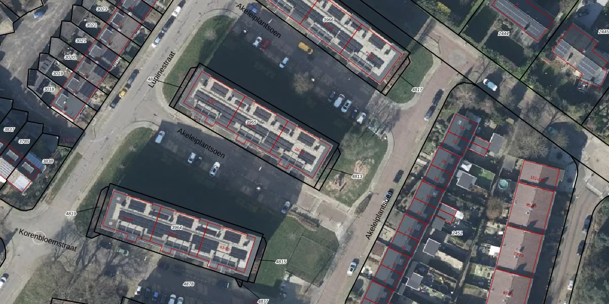 Het perceel waarop Akeleiplantsoen 37 staat heeft een oppervlakte van 909 m². Dit is een groot perceel. De perceeloppervlakte wordt geregistreerd door het Kadaster. Gedetailleerde informatie over de maten van dit perceel kunt u vinden in het rapport Kadastrale kaart met maatvoering van Akeleiplantsoen 37.