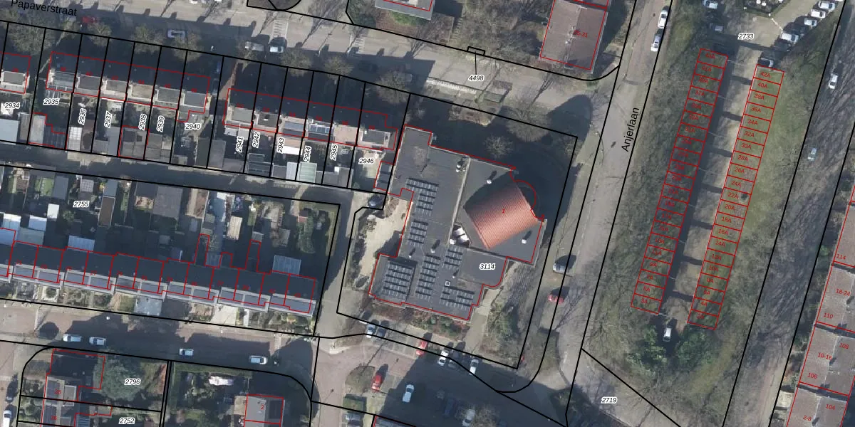 Gebruik de zoekbalk of klik op een perceel voor informatie over de adressen binnen dit perceel.