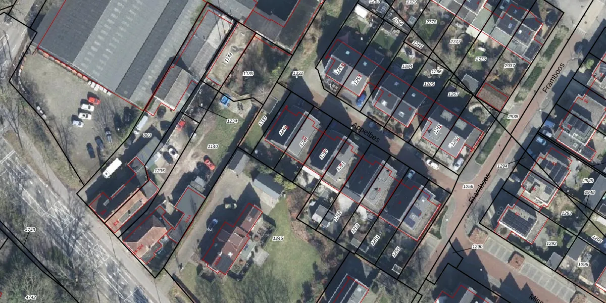 Gebruik de zoekbalk of klik op een perceel voor informatie over de adressen binnen dit perceel.