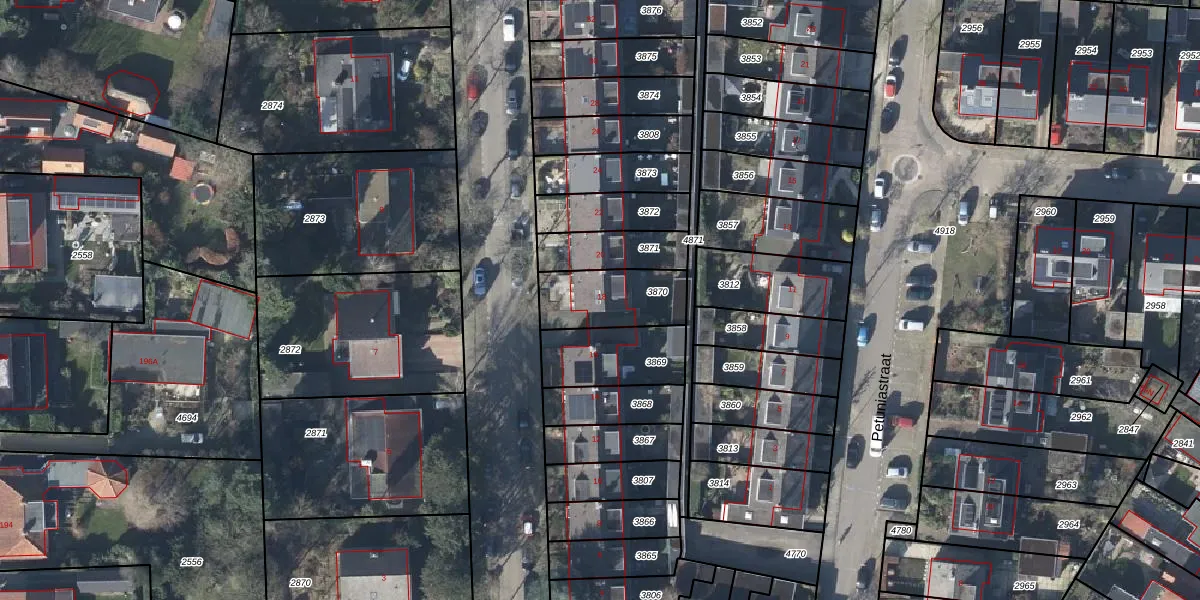 Gebruik de zoekbalk of klik op een perceel voor informatie over de adressen binnen dit perceel.