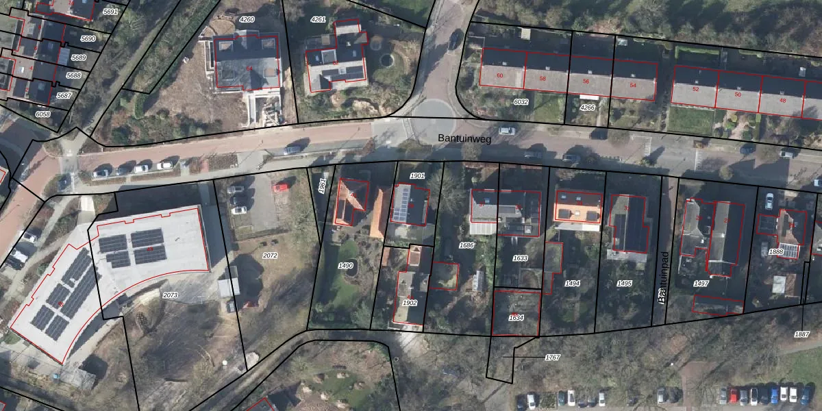 Bantuinweg 39 is gelegen op kadastraal perceel RNN01F1901. Deze kadastrale aanduiding is uniek en wordt gebruikt door het Kadaster om eigendomsrechten en andere zakelijke rechten vast te leggen. Het perceel maakt onderdeel uit van de kadastrale gemeente Rhenen.