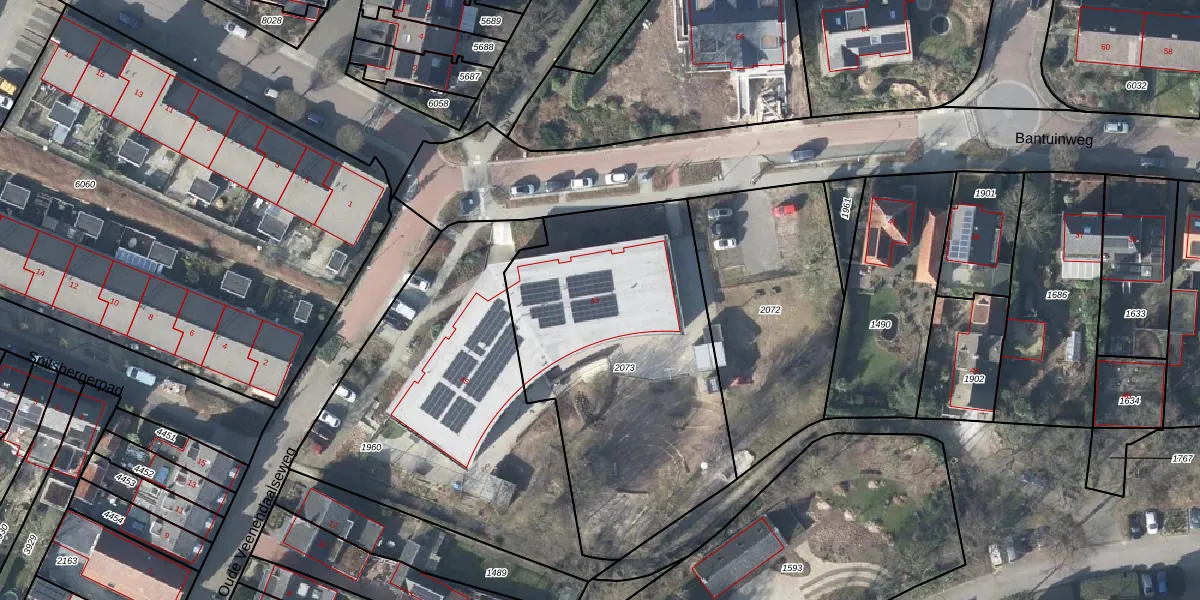 Bantuinweg 43 is gelegen op kadastraal perceel RNN01F2073. Deze kadastrale aanduiding is uniek en wordt gebruikt door het Kadaster om eigendomsrechten en andere zakelijke rechten vast te leggen. Het perceel maakt onderdeel uit van de kadastrale gemeente Rhenen.