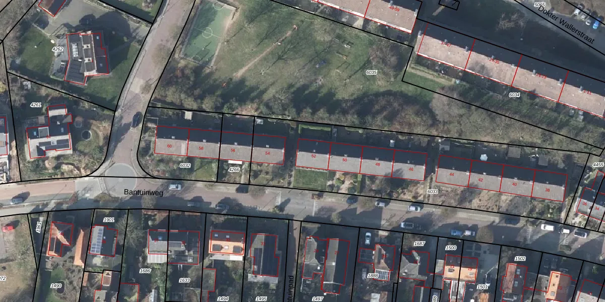 Bantuinweg 52 is gelegen op kadastraal perceel RNN01H6033. Deze kadastrale aanduiding is uniek en wordt gebruikt door het Kadaster om eigendomsrechten en andere zakelijke rechten vast te leggen. Het perceel maakt onderdeel uit van de kadastrale gemeente Rhenen.