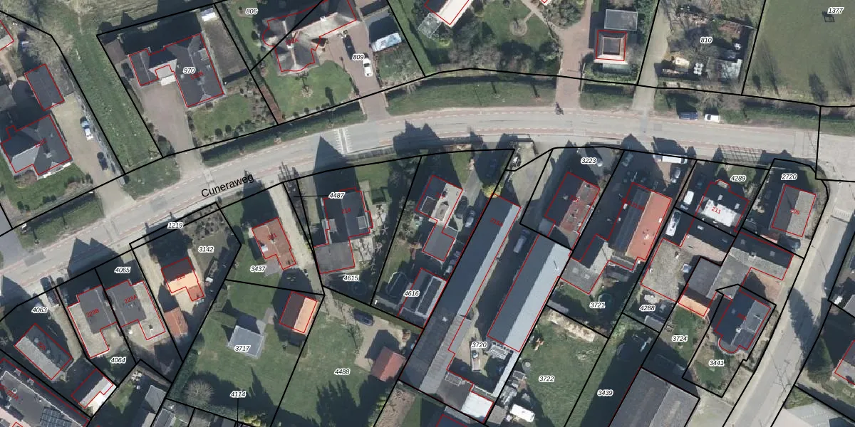 Cuneraweg 217 is gelegen op kadastraal perceel RNN01G4616. Deze kadastrale aanduiding is uniek en wordt gebruikt door het Kadaster om eigendomsrechten en andere zakelijke rechten vast te leggen. Het perceel maakt onderdeel uit van de kadastrale gemeente Rhenen.