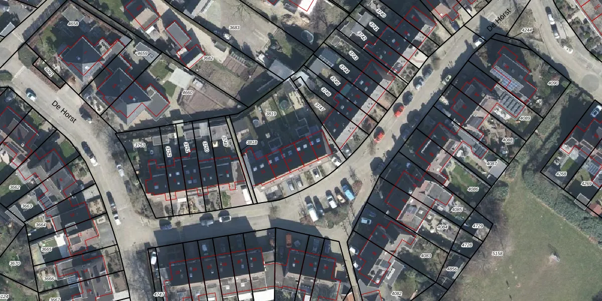 Het perceel waarop De Horst 17 staat heeft een oppervlakte van 935 m². Dit is een groot perceel. De perceeloppervlakte wordt geregistreerd door het Kadaster. Gedetailleerde informatie over de maten van dit perceel kunt u vinden in het rapport Kadastrale kaart met maatvoering van De Horst 17.