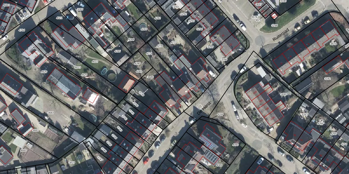 Gebruik de zoekbalk of klik op een perceel voor informatie over de adressen binnen dit perceel.