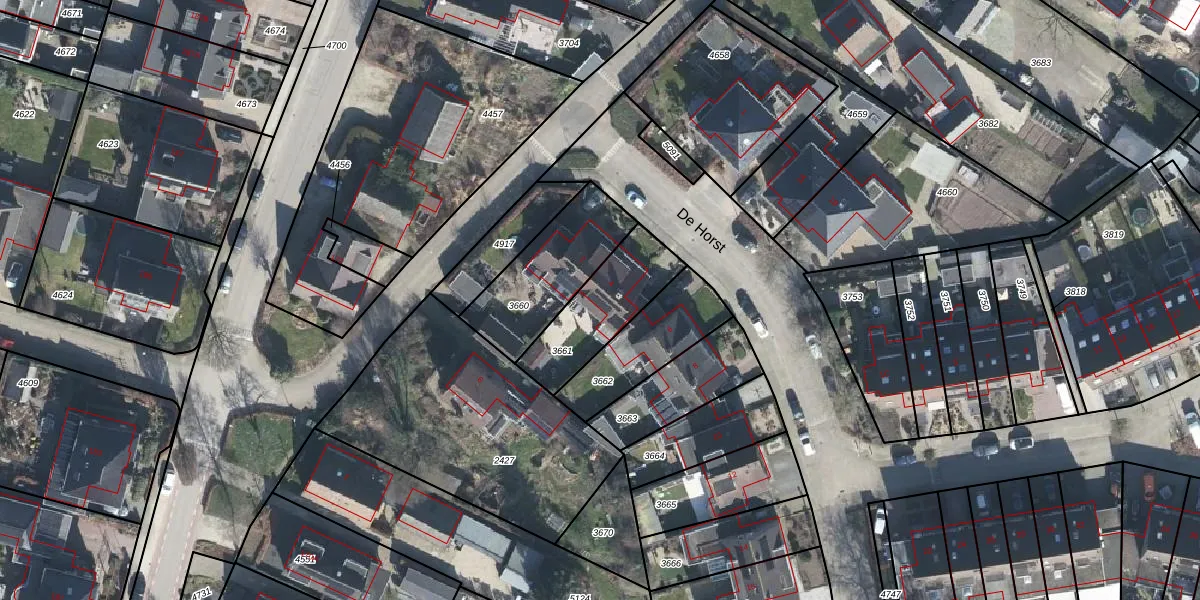Het perceel waarop De Horst 4 staat heeft een oppervlakte van 303 m². Dit is een groot perceel. De perceeloppervlakte wordt geregistreerd door het Kadaster. Gedetailleerde informatie over de maten van dit perceel kunt u vinden in het rapport Kadastrale kaart met maatvoering van De Horst 4.