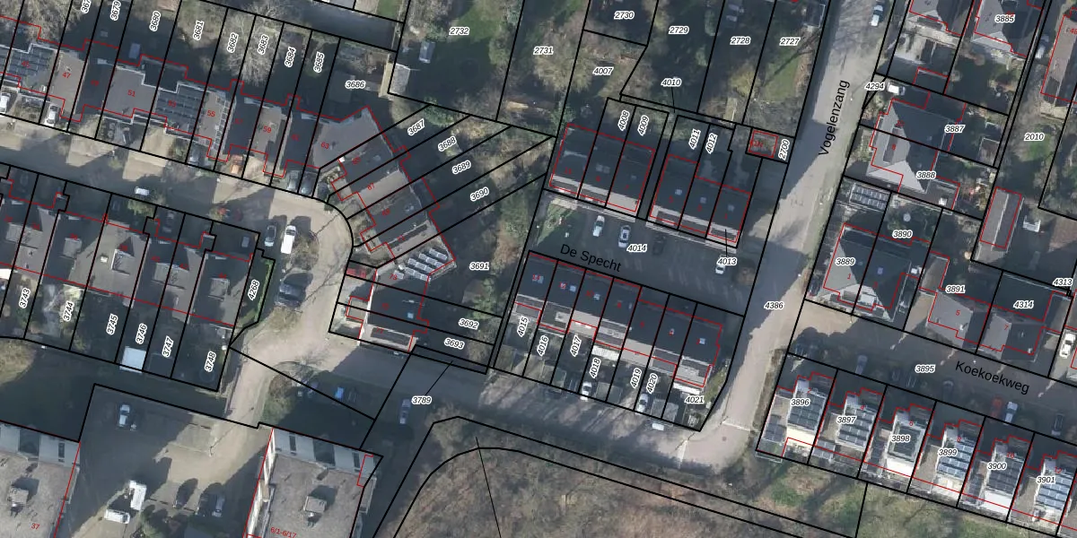 Gebruik de zoekbalk of klik op een perceel voor informatie over de adressen binnen dit perceel.