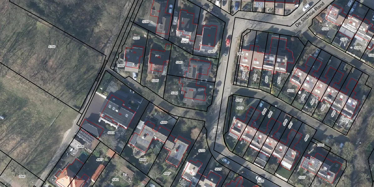 De Stichtse Rand 37-A is gelegen op kadastraal perceel RNN01H5344. Deze kadastrale aanduiding is uniek en wordt gebruikt door het Kadaster om eigendomsrechten en andere zakelijke rechten vast te leggen. Het perceel maakt onderdeel uit van de kadastrale gemeente Rhenen.