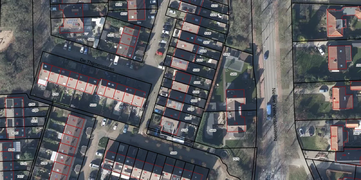 Het perceel waarop De Thijmenstoren 39 staat heeft een oppervlakte van 138 m². Dit is een middelgroot perceel. De perceeloppervlakte wordt geregistreerd door het Kadaster. Gedetailleerde informatie over de maten van dit perceel kunt u vinden in het rapport Kadastrale kaart met maatvoering van De Thijmenstoren 39.