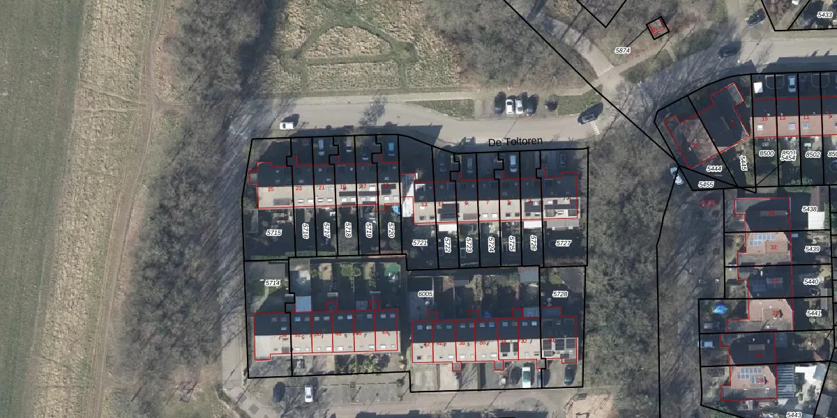 Het perceel waarop De Toltoren 13 staat heeft een oppervlakte van 250 m². Dit is een middelgroot perceel. De perceeloppervlakte wordt geregistreerd door het Kadaster. Gedetailleerde informatie over de maten van dit perceel kunt u vinden in het rapport Kadastrale kaart met maatvoering van De Toltoren 13.