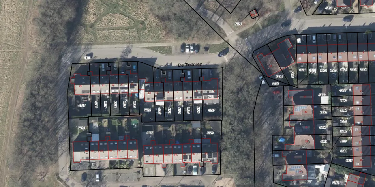 Het perceel waarop De Toltoren 5 staat heeft een oppervlakte van 141 m². Dit is een middelgroot perceel. De perceeloppervlakte wordt geregistreerd door het Kadaster. Gedetailleerde informatie over de maten van dit perceel kunt u vinden in het rapport Kadastrale kaart met maatvoering van De Toltoren 5.