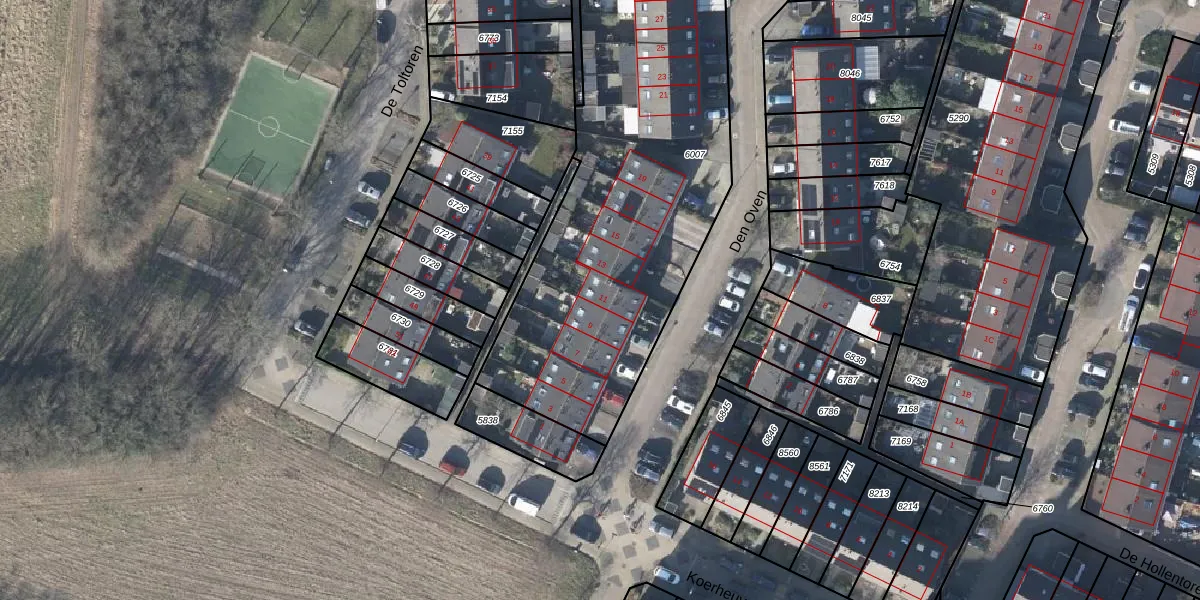 Het perceel waarop Den Oven 11 staat heeft een oppervlakte van 2300 m². Dit is een zeer groot perceel. De perceeloppervlakte wordt geregistreerd door het Kadaster. Gedetailleerde informatie over de maten van dit perceel kunt u vinden in het rapport Kadastrale kaart met maatvoering van Den Oven 11.