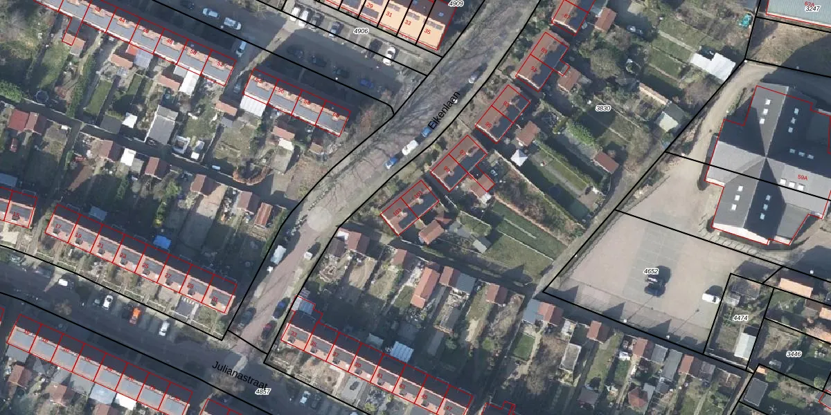Eikenlaan 101 is gelegen op kadastraal perceel RNN01G3830. Deze kadastrale aanduiding is uniek en wordt gebruikt door het Kadaster om eigendomsrechten en andere zakelijke rechten vast te leggen. Het perceel maakt onderdeel uit van de kadastrale gemeente Rhenen.