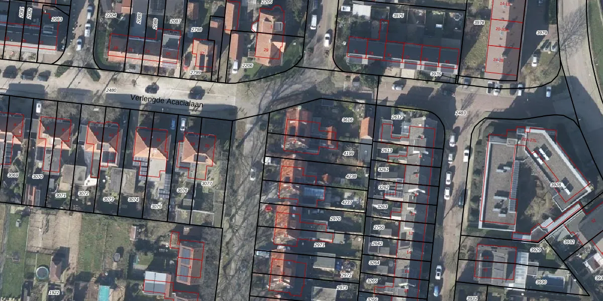 Gebruik de zoekbalk of klik op een perceel voor informatie over de adressen binnen dit perceel.