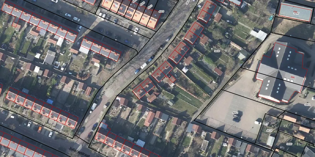 Eikenlaan 99 is gelegen op kadastraal perceel RNN01G3830. Deze kadastrale aanduiding is uniek en wordt gebruikt door het Kadaster om eigendomsrechten en andere zakelijke rechten vast te leggen. Het perceel maakt onderdeel uit van de kadastrale gemeente Rhenen.