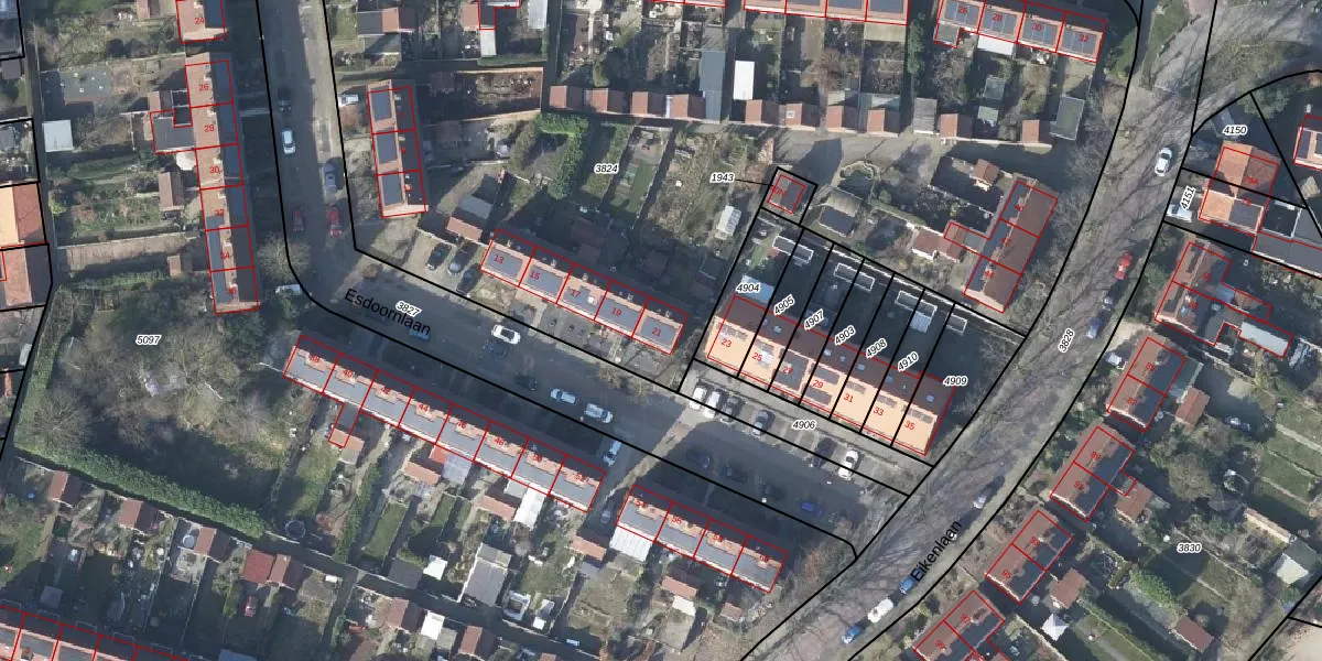 Esdoornlaan 21 is gelegen op kadastraal perceel RNN01G3824. Deze kadastrale aanduiding is uniek en wordt gebruikt door het Kadaster om eigendomsrechten en andere zakelijke rechten vast te leggen. Het perceel maakt onderdeel uit van de kadastrale gemeente Rhenen.