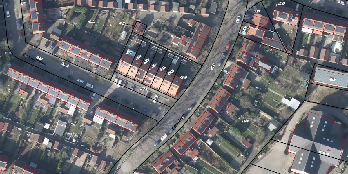 Esdoornlaan 35 is gelegen op kadastraal perceel RNN01G4909. Deze kadastrale aanduiding is uniek en wordt gebruikt door het Kadaster om eigendomsrechten en andere zakelijke rechten vast te leggen. Het perceel maakt onderdeel uit van de kadastrale gemeente Rhenen.
