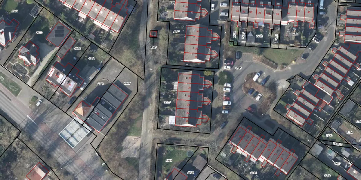 Het adres ligt op het perceel RNN01-H-5026, dat zich in de kadastrale gemeente Rhenen bevindt. Het perceel is 1010 m² groot. Dat is kleiner dan de gemiddelde perceeloppervlakte in Rhenen, dat op 4285,65 m² ligt. Het grootste perceel in de kadastrale gemeente is 1,05 km². Het kleinste perceel heeft een oppervlakte van 0 m². Op het perceel zijn 6 adressen aanwezig. In de Basisregistratie Kadaster (BRK) werden de grenzen van het perceel geregistreerd op 28-02-2002.