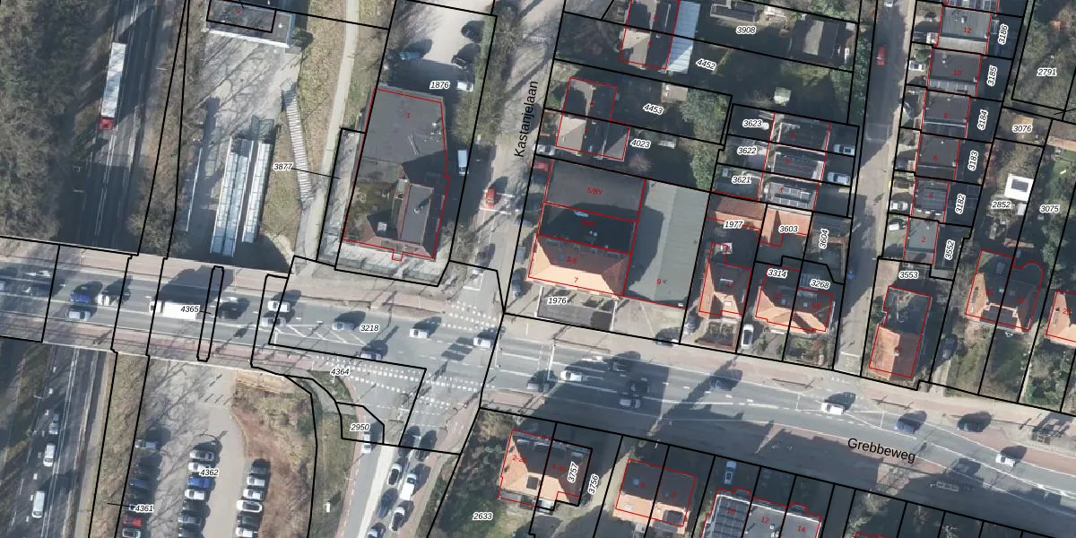 Het perceel waarop Grebbeweg 5 staat heeft een oppervlakte van 1005 m². Dit is een zeer groot perceel. De perceeloppervlakte wordt geregistreerd door het Kadaster. Gedetailleerde informatie over de maten van dit perceel kunt u vinden in het rapport Kadastrale kaart met maatvoering van Grebbeweg 5.