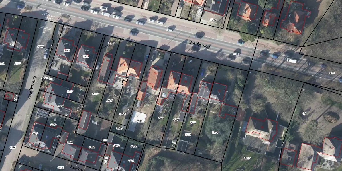 Het perceel waarop Grebbeweg 56 staat heeft een oppervlakte van 506 m². Dit is een groot perceel. De perceeloppervlakte wordt geregistreerd door het Kadaster. Gedetailleerde informatie over de maten van dit perceel kunt u vinden in het rapport Kadastrale kaart met maatvoering van Grebbeweg 56.