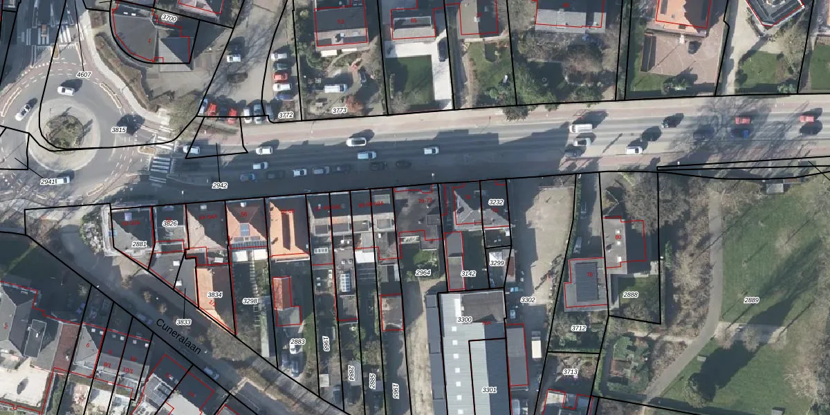 Het perceel waarop het adres ligt is RNN01-E-2964. De afkorting 'RNN01' staat voor kadastrale gemeente Rhenen. Het perceel is kleiner dan gemiddeld in Rhenen. Het perceel is 630 m² groot, terwijl het gemiddelde ligt op 4294,49 m². De grootste perceeloppervlakte in de kadastrale gemeente is 1,05 km². De kleinste oppervlakte bedraagt 0 m². Op het perceel zijn 3 adressen aanwezig. In de Basisregistratie Kadaster (BRK) werden de grenzen van het perceel geregistreerd op 06-03-2002.