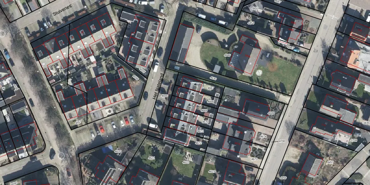 Het Nateland 10 is gelegen op kadastraal perceel RNN01G4668. Deze kadastrale aanduiding is uniek en wordt gebruikt door het Kadaster om eigendomsrechten en andere zakelijke rechten vast te leggen. Het perceel maakt onderdeel uit van de kadastrale gemeente Rhenen.