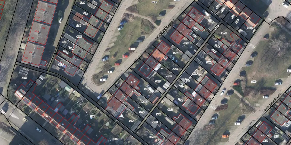 Jasmijnplantsoen 10 is gelegen op kadastraal perceel RNN01G3635. Deze kadastrale aanduiding is uniek en wordt gebruikt door het Kadaster om eigendomsrechten en andere zakelijke rechten vast te leggen. Het perceel maakt onderdeel uit van de kadastrale gemeente Rhenen.